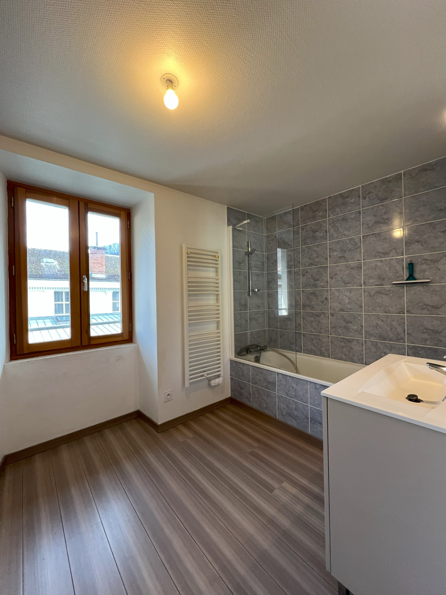 Appartement de F3 au centre ville, proche des commodités, situé au 3ème étage, sans ascenseur d'une petite résidence, comprenant : grand hall d'entrée, cuisine avec cellier, séjour, 2 chambres en enfilade, salle de bains et wc séparé. Chauffage individuel électrique et production d'eau chaude par cumulus électrique.