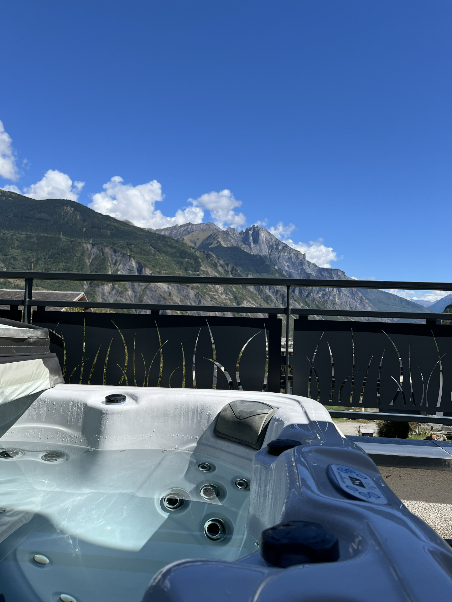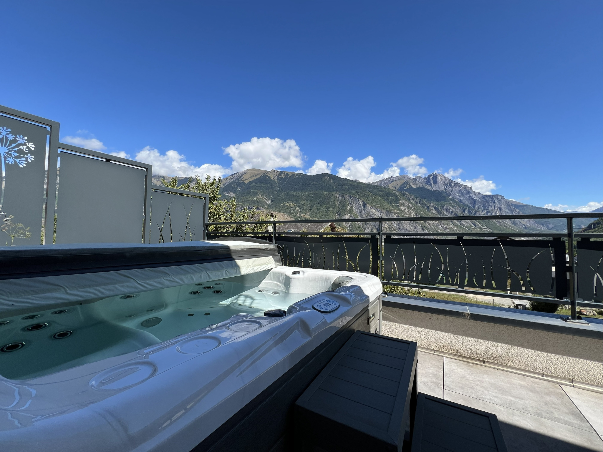 Venez visiter cette maison offrant une belle distributiuon des lieux pour une superficie habitable de 132.72 m2: sur deux niveaux . Vous trouverez au rez de chaussée accès par le haut de la maison (coté route), entrée dégaement donnant sur un wc séparé , une salle de bain, trois chambres confortables dont une ouvrant sur une belle terrasse avec jaccuzzi et une vue parfaitement dégagée sur la montagne environnante , un garage avec porte automatique.