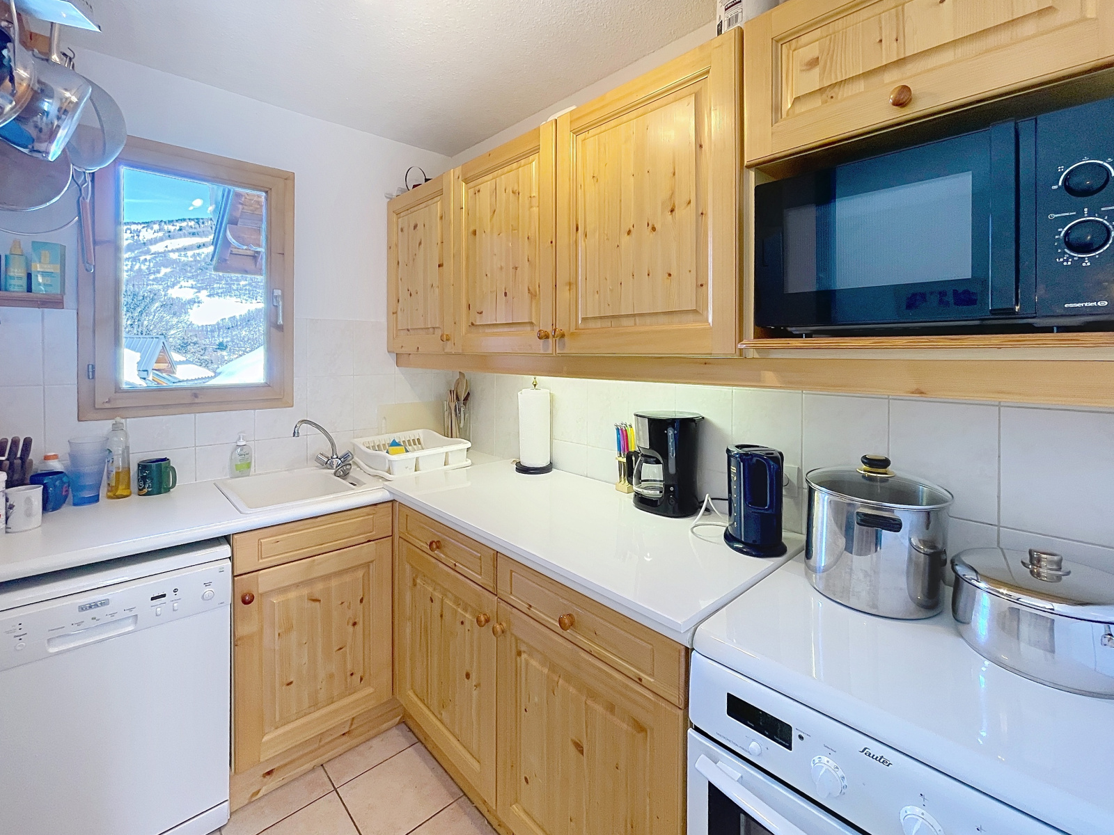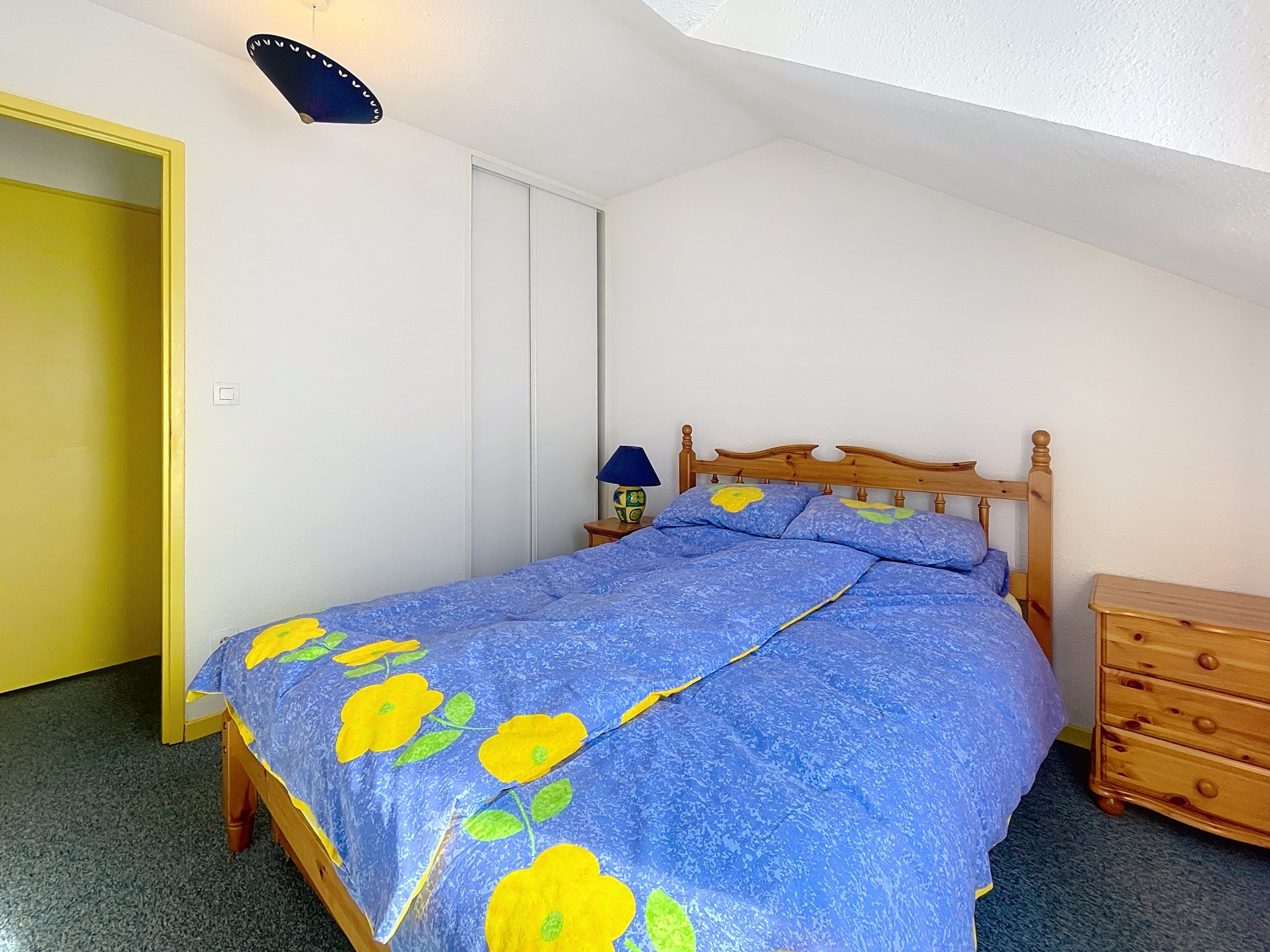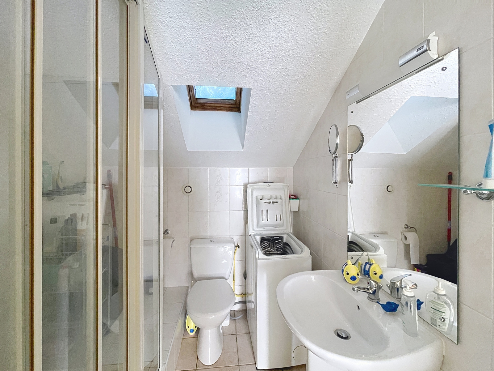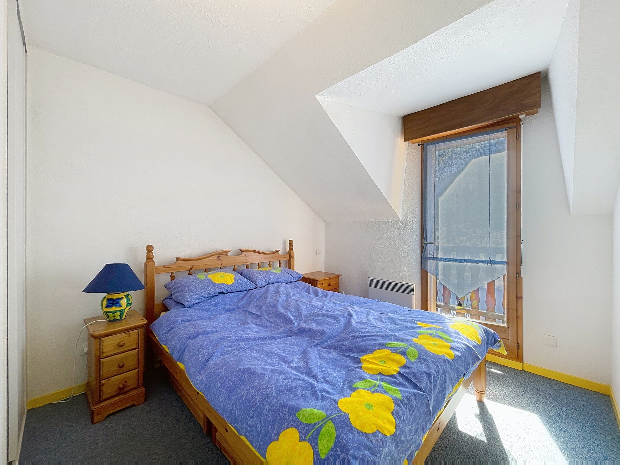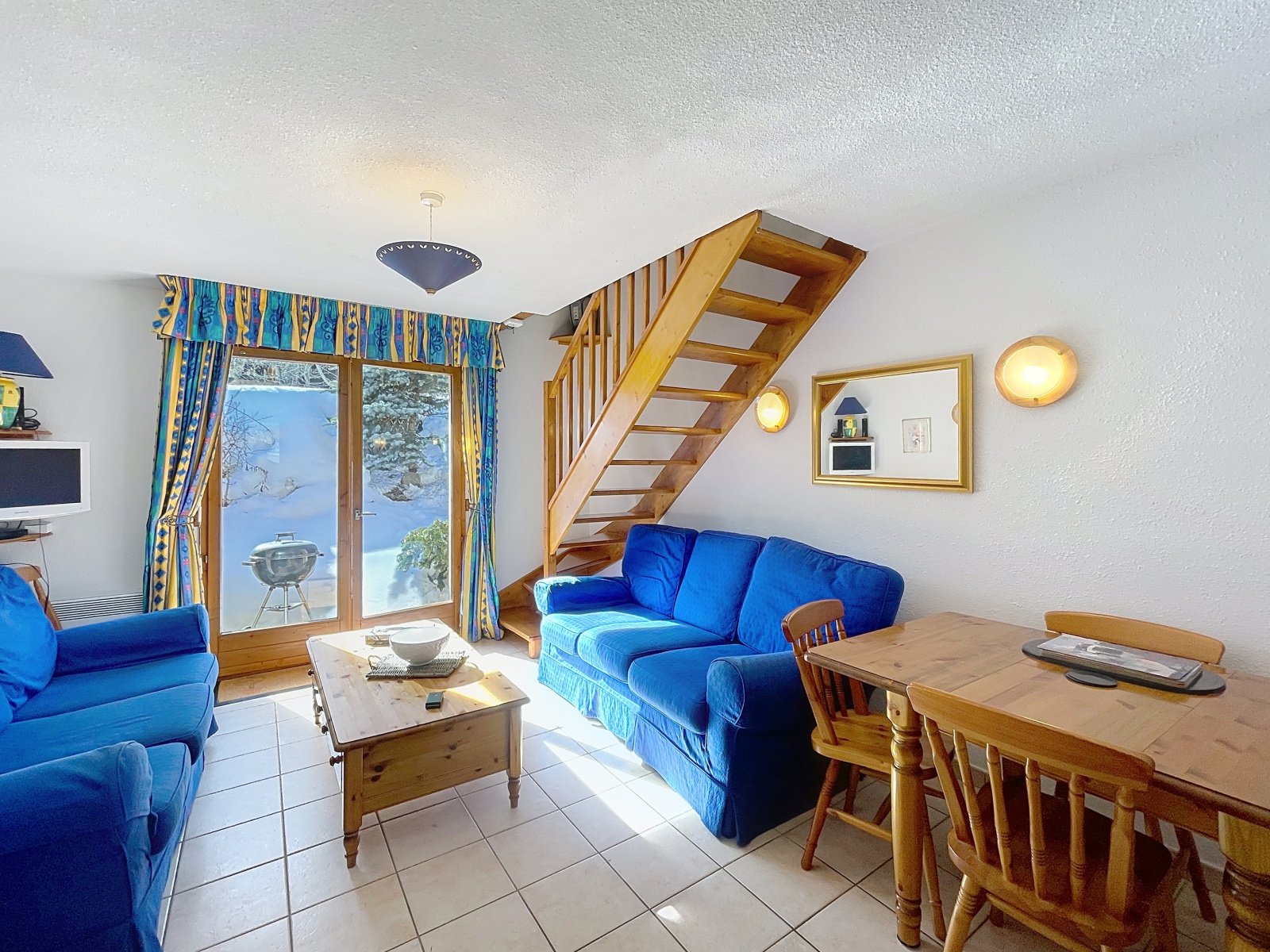 Il se compose pour une superficie habitable de 40.41m² (loi Carrez) + 5.73m² en surface utile, au rez de jardin : un sas d'entrée, wc séparé, séjour avec kitchenette équipée ouverte sur séjour donnant sur une terrasse (espace jardin privatif ) en exposition OUEST, escalier désservant l'étage avec une salle d'eau avec WC et lave-linge , dégagement palier, 2 chambres dont une avec balcon de 1.22m² en exposition OUEST. Tout éléctrique individuel y compris hors gel en saison hivernale. Vue dégagée sur montagne environnante.