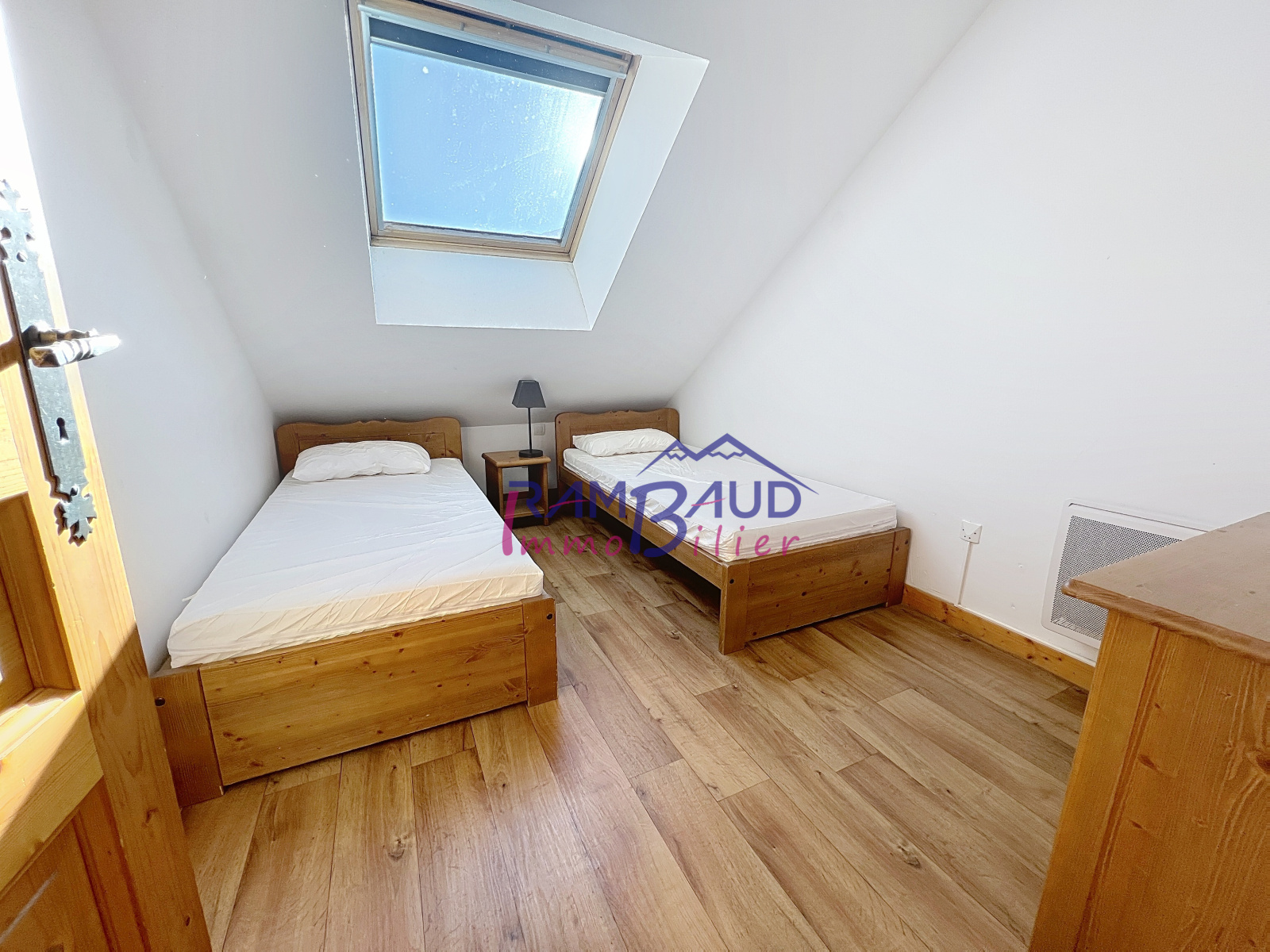 Venez visiter sans tarder ce logement de type 4 PIECES DUPLEX rénové en 2018 situé au 3ème étage avec ascenseur, comprenant pour une superficie CARREZ de 53.15 m2 + surface utile sous 1.80m. Il se compose d'une entrée avec placard de rangement, une chambre avec placards, wc separé, une pièce de vie de 14.32 m2 (séjour salon cuisine intégrée équipée ) ouvrant sur un balcon de 4.25 m2 en exposition PLEIN SUD offrant une vue parfaitement dégagée sur la station et le versant skiable de la SETAZ. Un escalier bois desservant l'étage avec un palier dégagement distribuant deux chambres mansardées avec velux , deux salles d'eau dont une avec wc. Meublé pour 6-8 personnes.