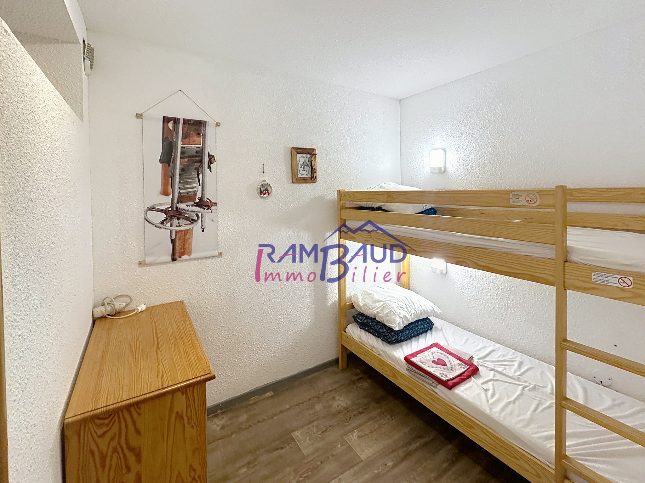 A proximité du front de neige avec le départ du télésiège des jeux à 100m où vous trouverez toutes les commodités de la station à 1800, commerces , ESF, garderie, et activités après ski et celles à découvrir en saison d'été via l'office du tourisme... Venez découvrir ce appartement bien distribué de type 2 PIECES CABINE situé au 4ème étage avec ascenseur d'une résidence sécurisée avec digicode bien entretenue et comprenant pour une superficie de 32.82 m²: une entrée, coin nuit fermé avec lits superposés et placard de rangement, salle de bain, wc séparé, séjour avec coin cuisine équipée ouvrant sur un balcon en exposition EST de 2.95 m², et dans le prolongement du séjour une chambre alcôve équipée d'un lit doubl avec placard fermée par des portes coulissantes agrandissant le volume en journée. La distribution est intéressante et fonctionnelle pour 4- 6 personnes.