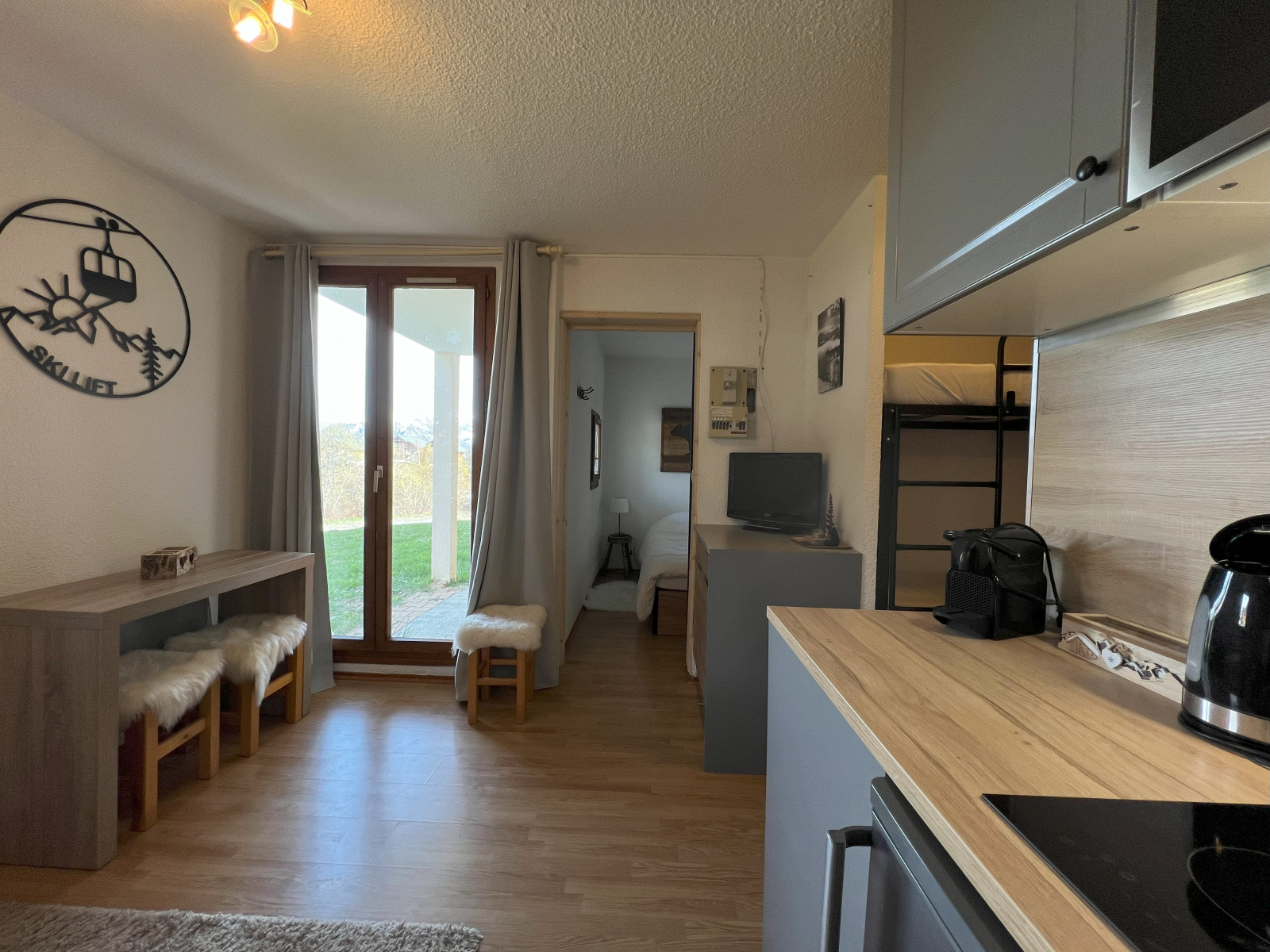 Découvrez ce T2 moderne, très bien rénové, avec jardin situé sur la station de la Toussuire !